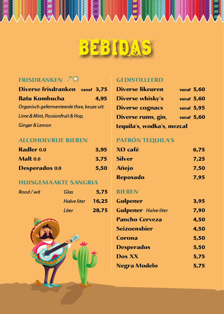 Bij ons kunt u genieten van smakelijke Mexicaanse gerechten en drankjes in een feestelijke en ontspannen sfeer.