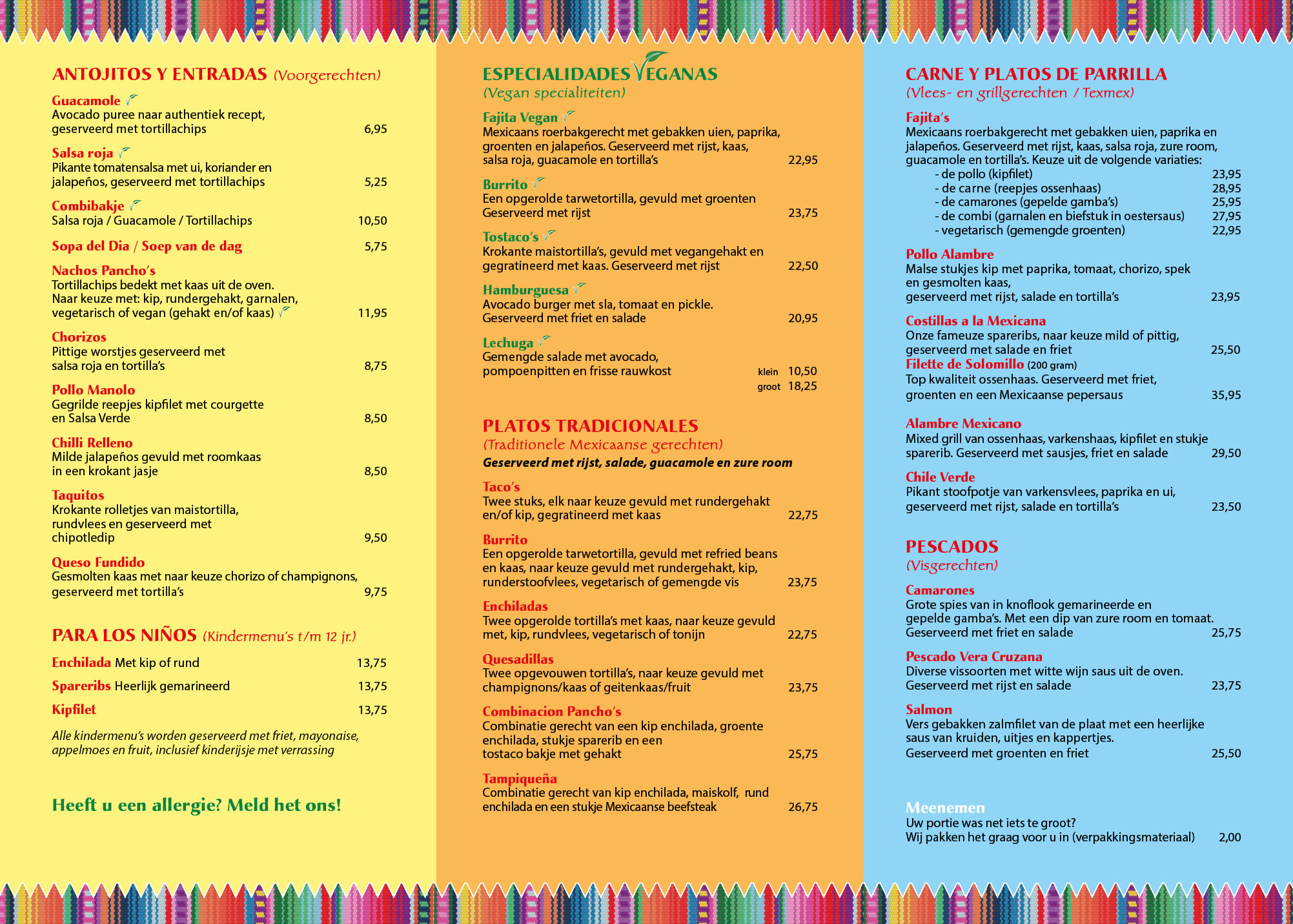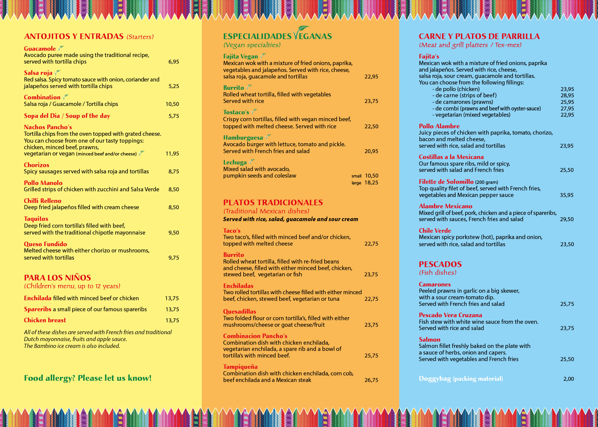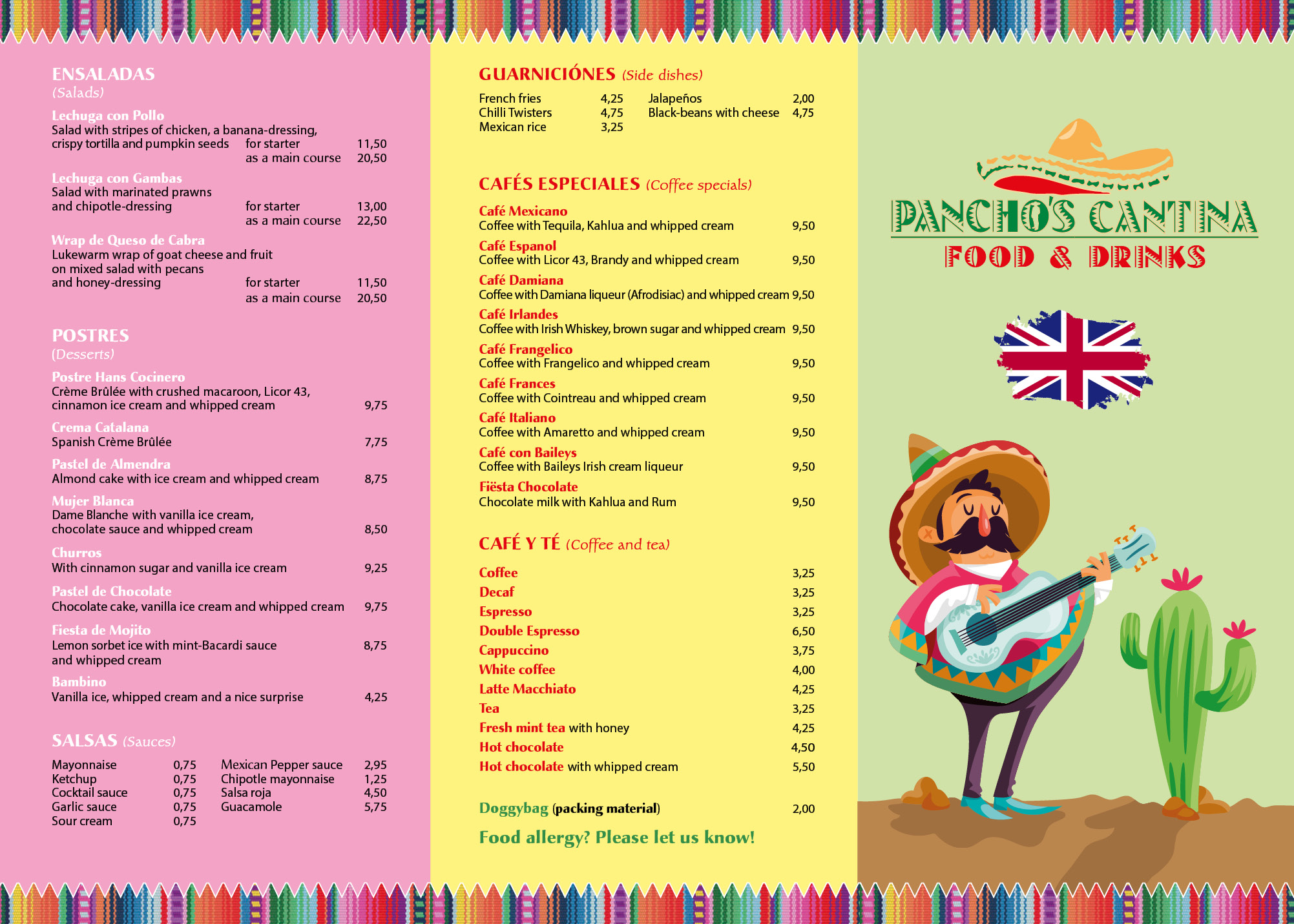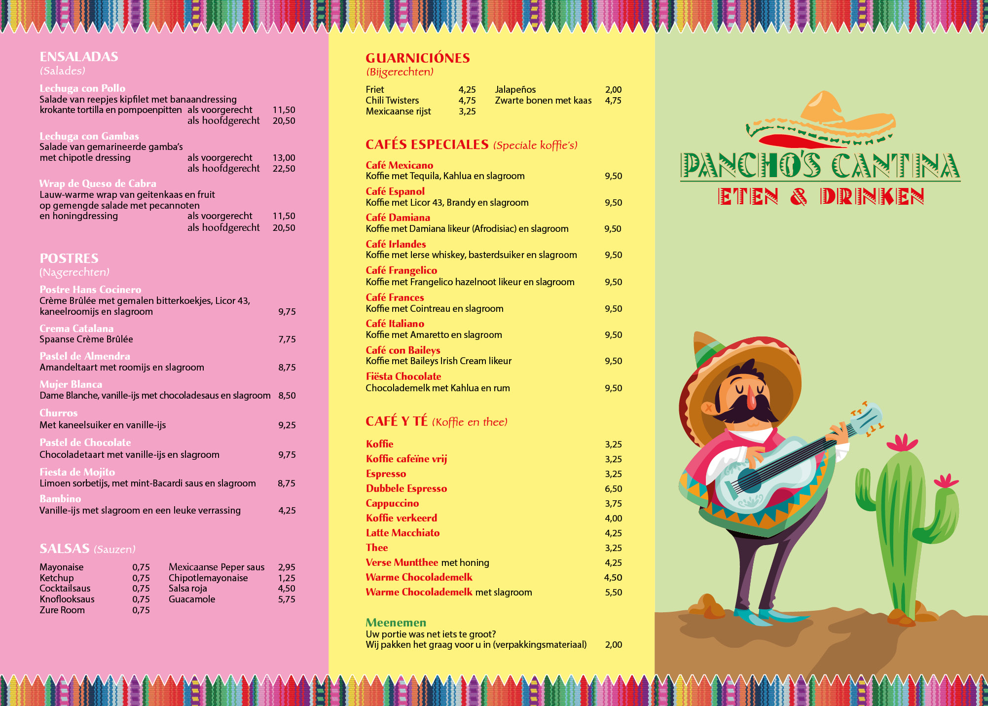Klik op de kaarten om de menu's van Pancho's Cantina te bekijken: